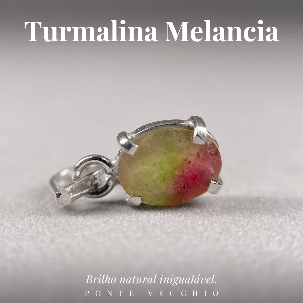A Turmalina Melancia, com suas cores que se fundem em tons de verde e rosa, é um símbolo de equilíbrio e vitalidade. Essa pedra encantadora, com seu brilho natural, traz um toque especial a qualquer joia.