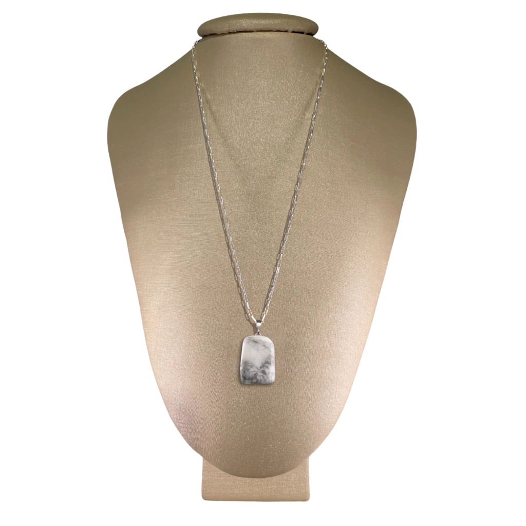 A Howlita, com sua cor branca e veios cinza, é apreciada por suas propriedades de promover calma e sabedoria. Esta pedra serena ajuda a aliviar o estresse e a encontrar a paz interior, adicionando elegância tranquila a qualquer joia.