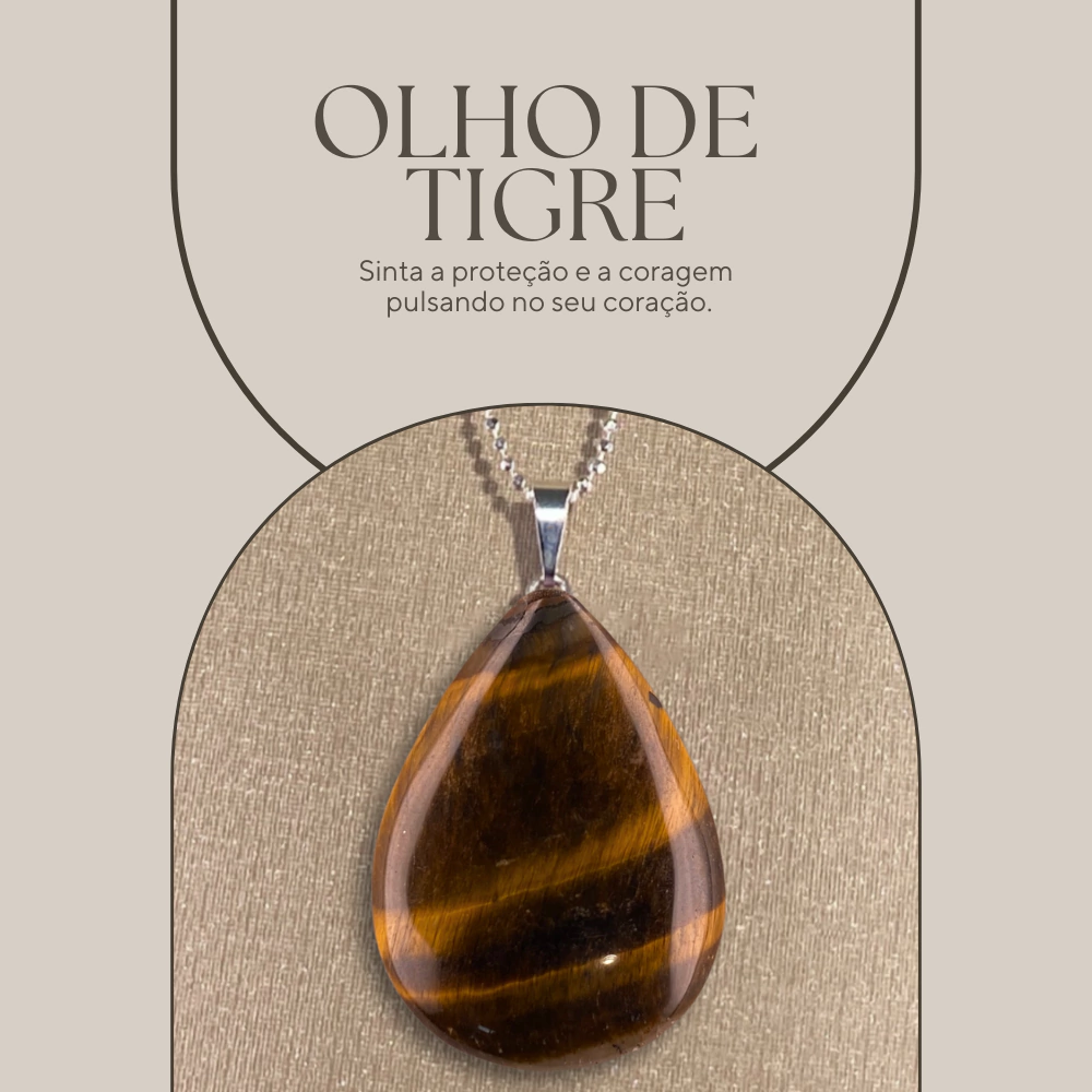 O Olho de Tigre, com suas faixas douradas e marrons, é conhecido por suas propriedades de coragem e proteção. Esta pedra dinâmica promove força interior e confiança, destacando-se em qualquer joia.