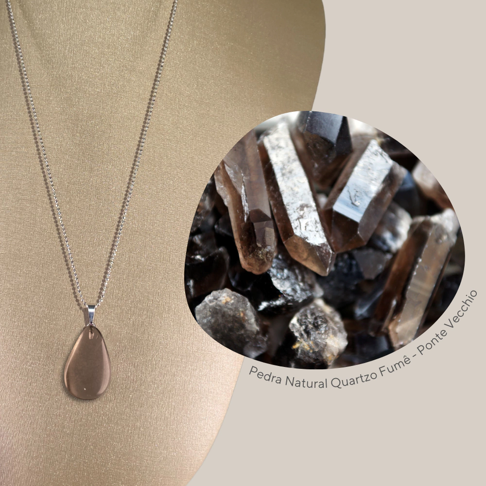 O Quartzo Fumê, com sua tonalidade marrom-acinzentada, é valorizado por suas propriedades de proteção e estabilidade. Esta pedra poderosa promove aterramento e segurança, destacando-se em qualquer joia.