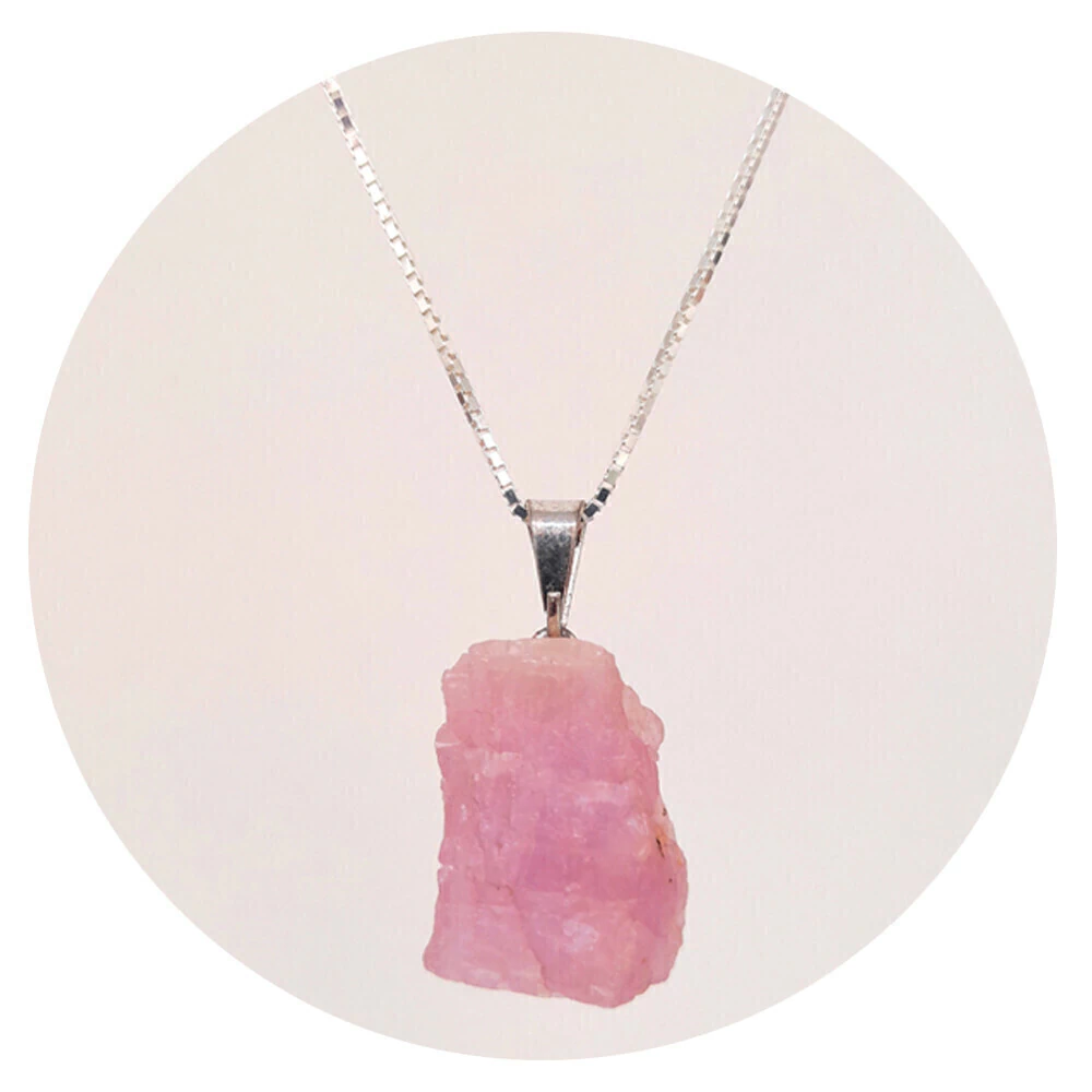 "Um lindo colar prata 925 de malha veneziana de Quartzo Rosa Bruto