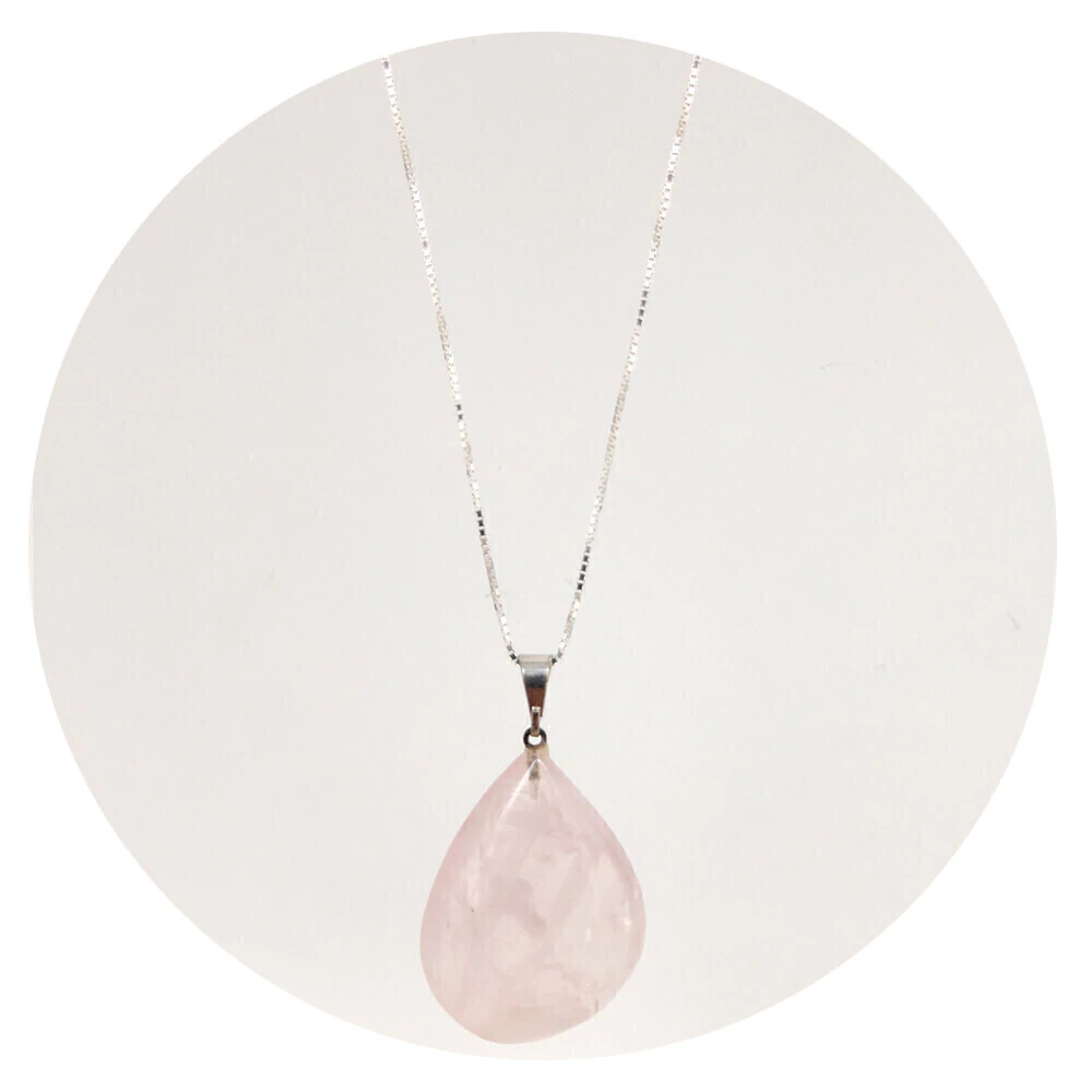 Um lindo pingente de Quartzo Rosa em formato de gotas